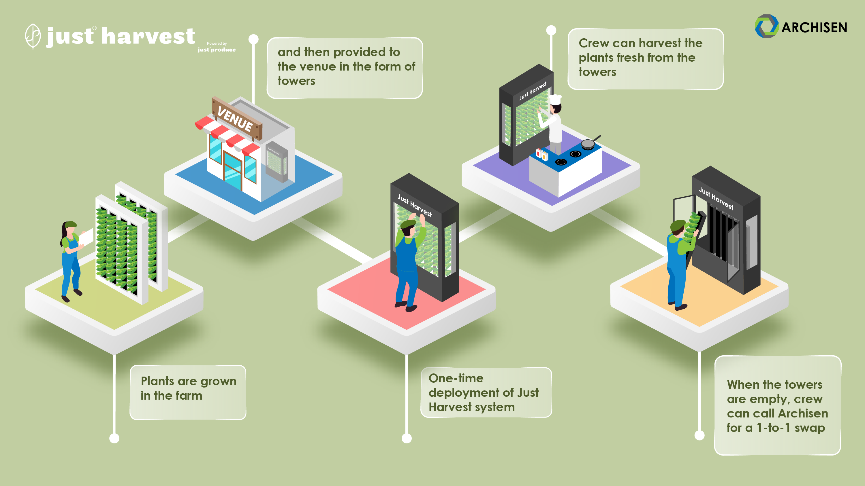 just harvest is a rapidly deployable farming solution which provides you and your customers with the full experience of freshly harvested crops right from the farm. Our vegetables are grown and nurtured carefully in a climate- controlled environment to ensure consistent quality all year-round.
